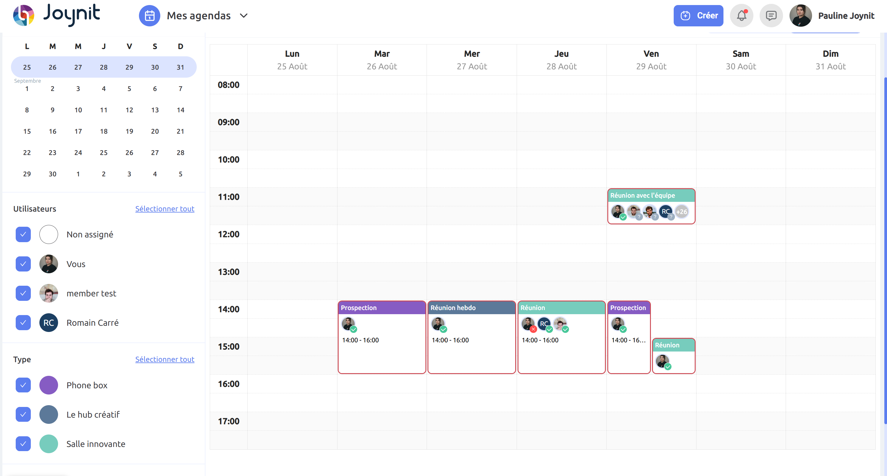🏢 Entreprises : Gérez simplement vos salles de réunion et espaces partagés grâce à un planning des salles clair et partagé. Visualisez les disponibilités en temps réel et facilitez l’organisation de vos équipes, même sur plusieurs sites.