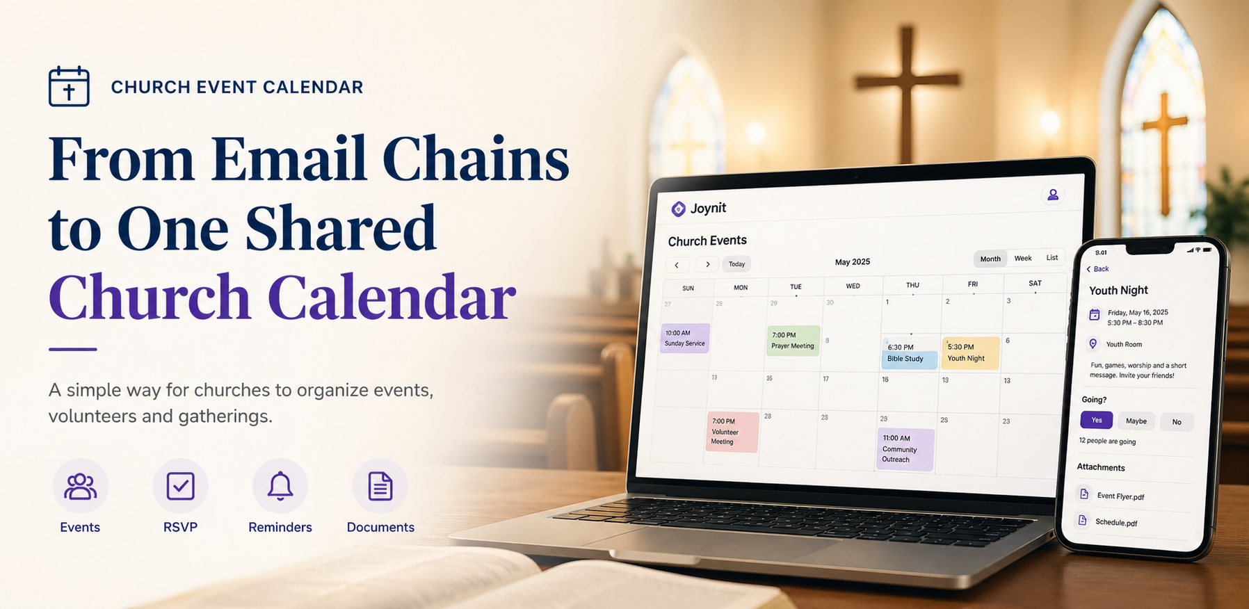 Joynit helps churches stay organized by focusing on what matters most: events, communication and community.
