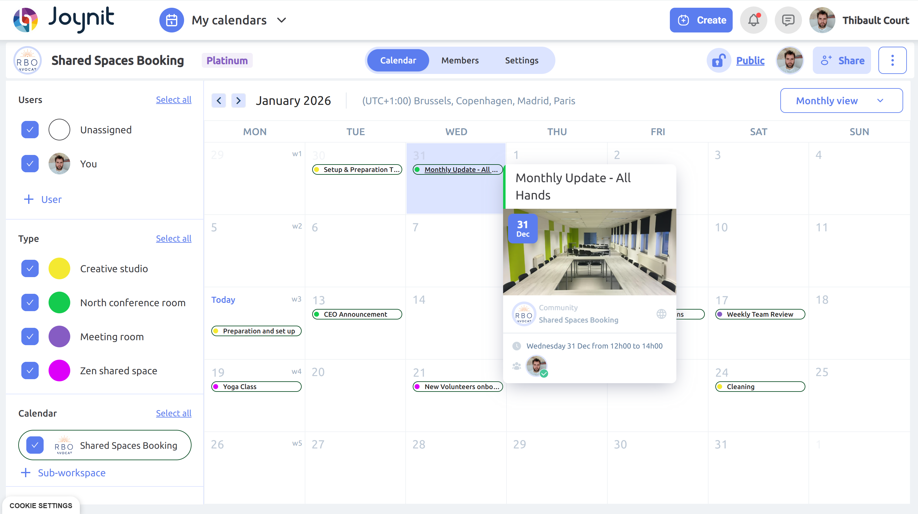 Joynit gives your community a single, shared calendar to see availability at a glance and book rooms or resources without conflicts. Everyone stays aligned, and shared spaces stay truly shared
