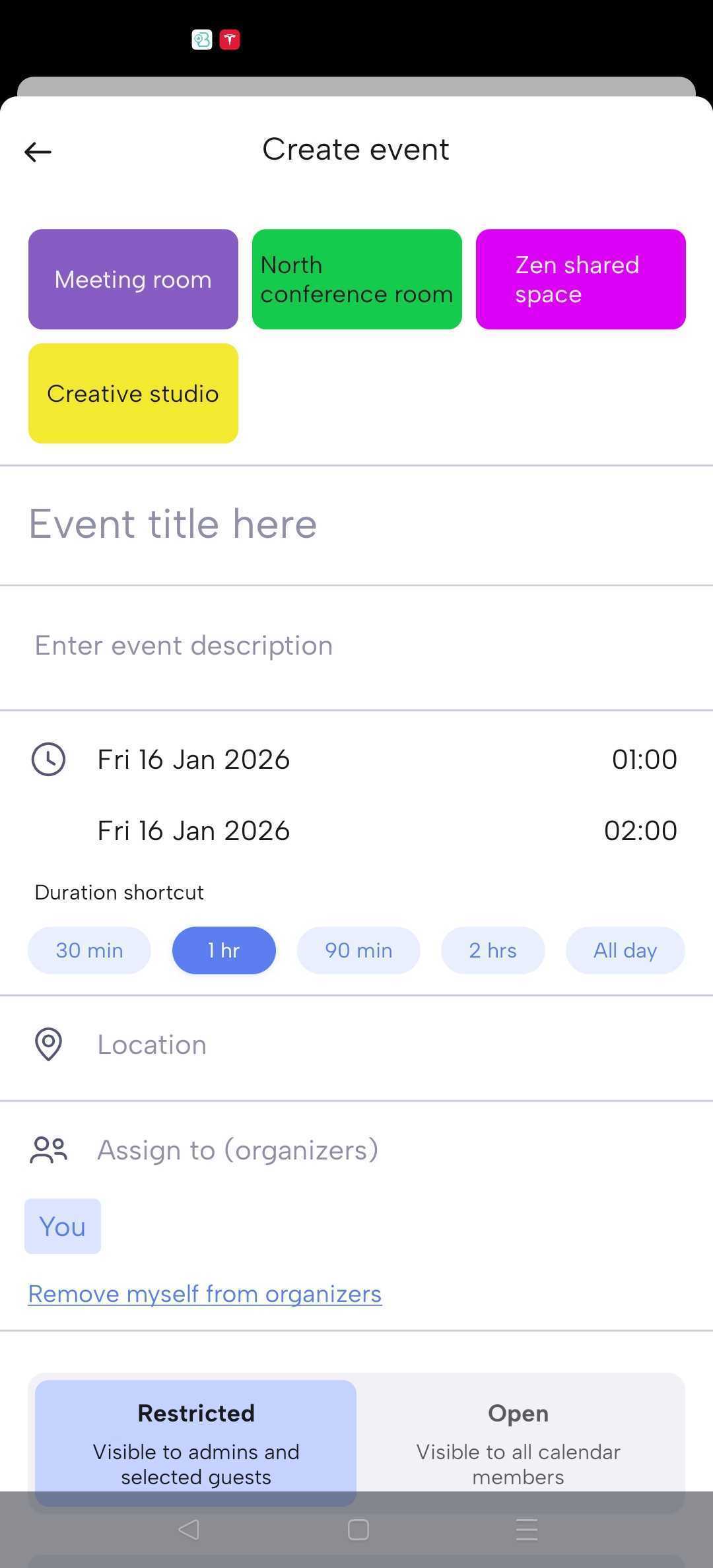 You decide who can book rooms and resources and who can manage the calendar β without turning one person into a gatekeeper.